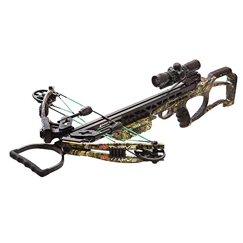 Includes 5-bolt quiver of 6-20" Carbon bolts with 100-grain bullet points, 4x32 illuminated multi-reticle scope, cocking rope, rubber coated folding foot stirrup and rail lube.