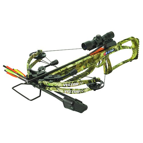 Efficient compact crossbow. Two turn weight adjustment. Mossy Oak Infinity Power Stroke: 11 1/4", Axle to Axle: 18 1/4", Overall Length with Stirrup: 32", Mass Weight: 6.3 lbs, Speed: 300-310 fps with 400 gr bolt, Kinetic Energy: 85 ft lbs, Draw Weight: 150/125 lbs. Package Includes: 4X32 Scope, sling, Cocking Rope, 5 Bolt Quiver, 3-20" Charger carbon bolts with half-moon nocks, 3- 85gr bullet points, Anti-Dry Fire and Auto Safety trigger with 3 lb pull, foot stirrup, string stops and rail lube.