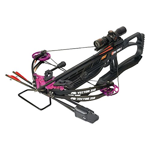 The exciting world of crossbow shooting shouldn't be limited by size; that's why PSE has engineered its 2015 crossbow line to deliver the new PSE Vector black with Purple accents crossbow. The Vector is the perfect solution for Youth and female shooters, or anyone looking for a high-performance, compact crossbow. But don't let its size fool you, the Vector delivers a bolt at 305 FPS and is built with a fully-machined, 3 lb. Precision trigger system, an upgraded Cam system, and built-in string stops. Power stroke 11 1/4 , axle to axle 18 1/4 , overall length W/stirrup 32 mass weight 6.3 #, speed; 310-300 FPS W/400gr bolt, Kinetic energy 85 ft lbs., draw weight 150-125 lbs. Package includes: string stops, 4x32 reticle scope, 5 bolt quiver, 3 20 carbon bolts with half-moon nocks and 85 grain bullet tips, cocking rope, rail Lube and foot stirrup. Anti-dry fire and auto safety trigger (3lb pull).